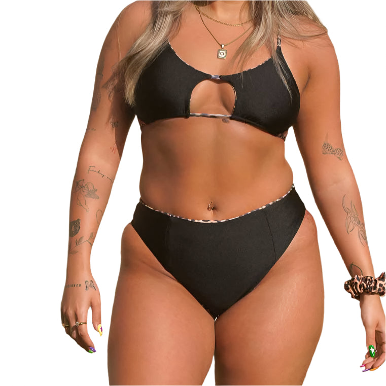 בגד ים חלק תחתון TACO - שחור + מנומר